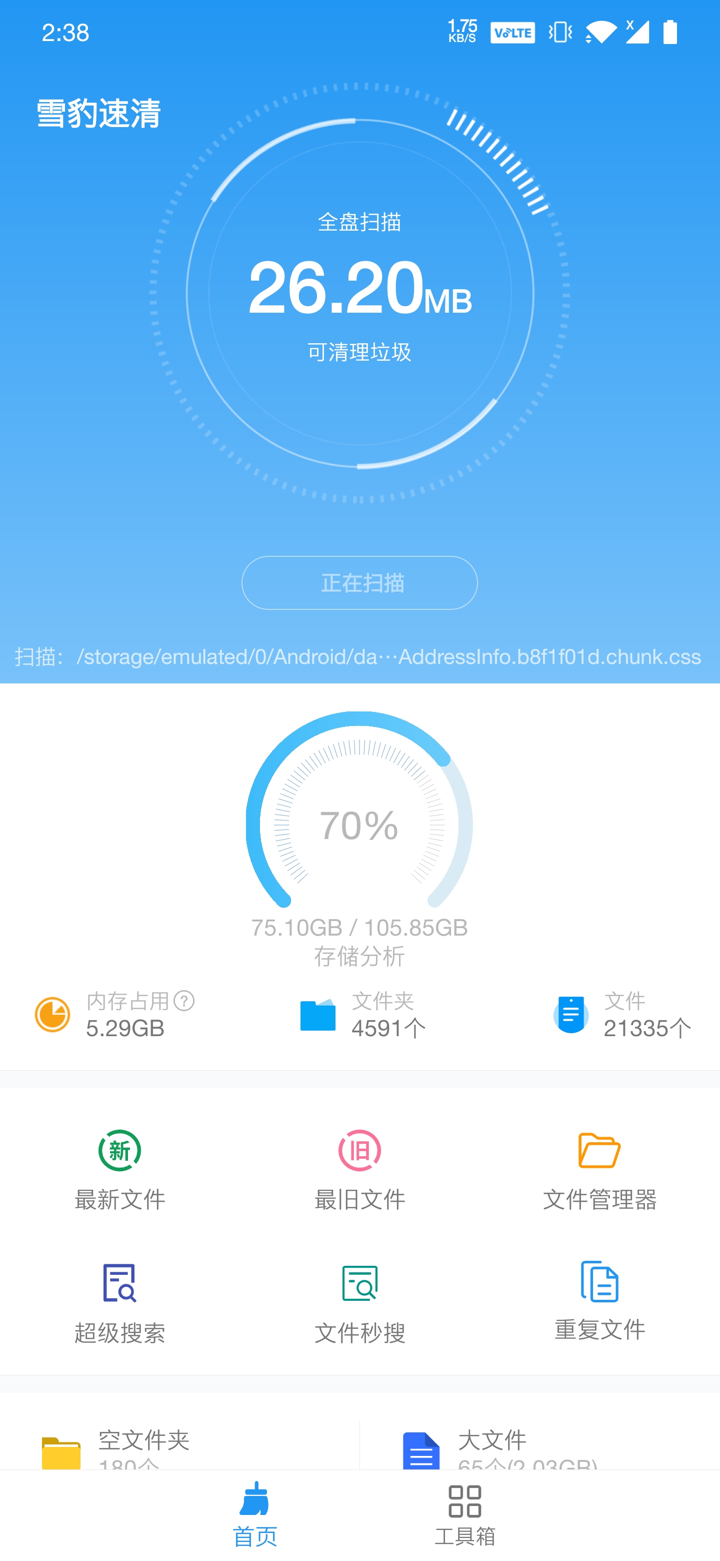 智能文件分类、一键清理垃圾,文件秒搜索、无需等待,支持安卓11/android/data目录访问、分析、扫描、复制、删除等操作