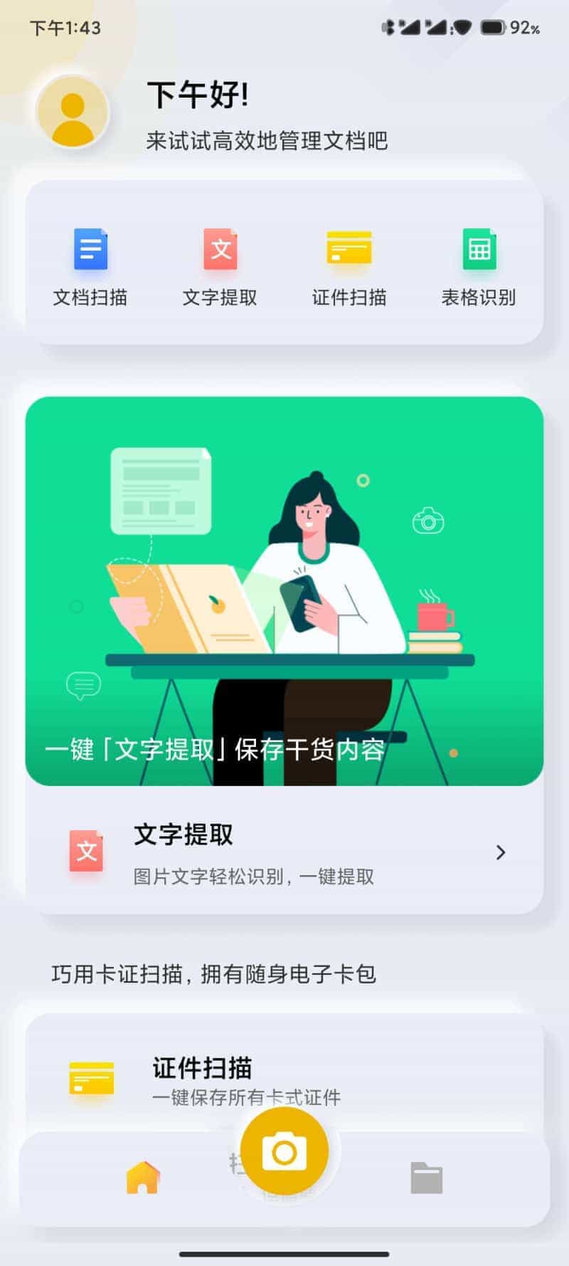 一款高颜值安卓扫描软件,功能齐全,扫描文档啊、照片啊、证件啊妥妥的,重要的是完全免费,无广告,良心! 应用截图 previous next 应用信息 大小: 20m 测试系统:android 8.0 急速下载 × 云顶集团3118的版权说明 翻应用是一个非营利性个人博客,并不贩卖软件,不存在任何商业目的及用途。不得将上述内容用于商业或者非法用途,本站信息来自网络,云顶集团3118的版权争议与本站无关。如有侵权请邮件与本站联系处理。 添加翻应用公众号,防迷路