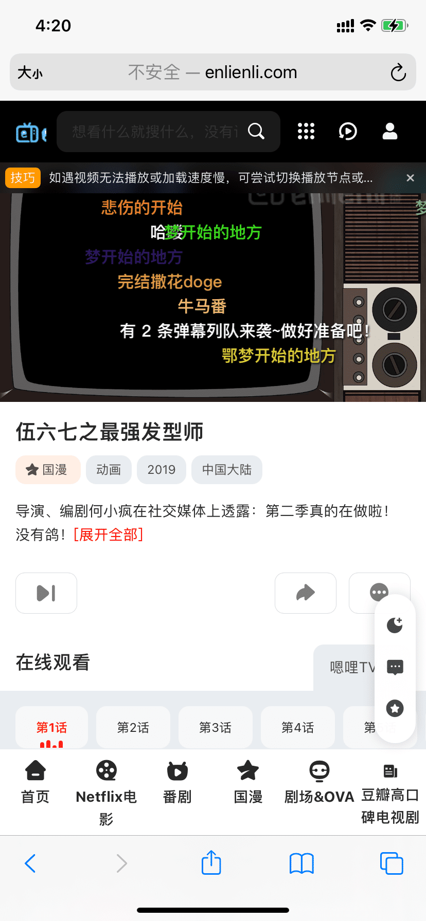 嗯里嗯里厉害的地方在于,它可以让你白嫖da会员的内容,同时,也支持弹幕,它的弹幕内容同步于国内最大的弹幕网站...有点内味了..