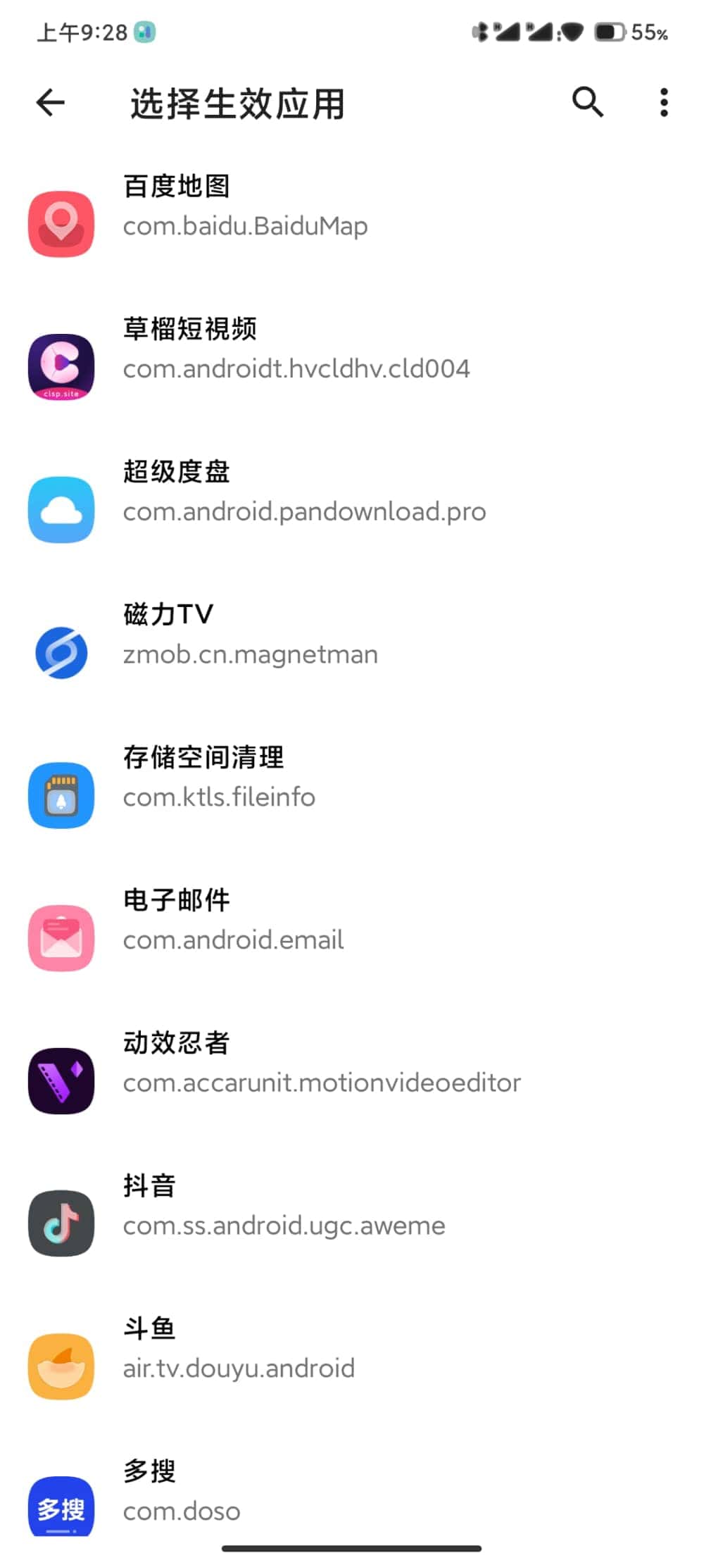 5、在选择生效应用中勾选不想让它检测到黑名单模板的app