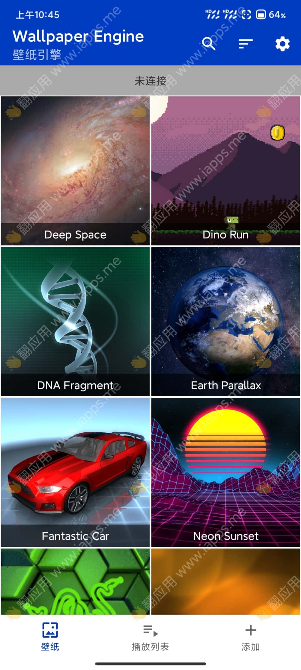 壁纸引擎wallpaper engine移动版,您可以轻松将动态壁纸合集导入到 android 设备上。 连接到 windows 上的 wallpaper engine,并将现有的动态壁纸合集传输到移动应用程序,或导入本地视频和 gif,轻松将其用作动态壁纸!