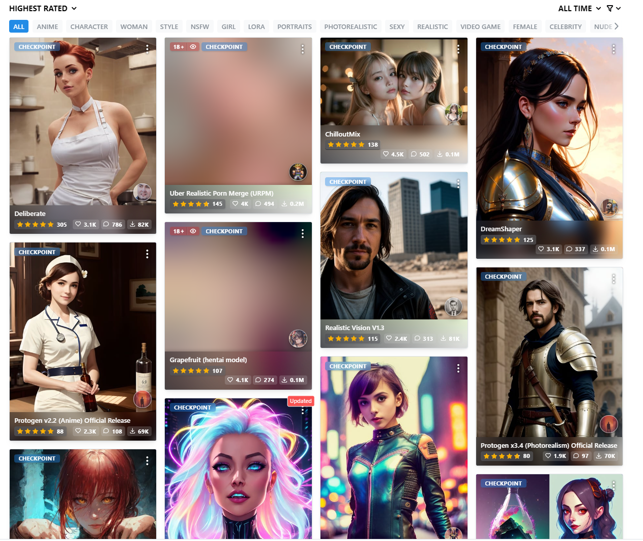 出于好奇,四哥就发现了这个ai模型社区:civitai,也被粉丝们亲切的成为c站。