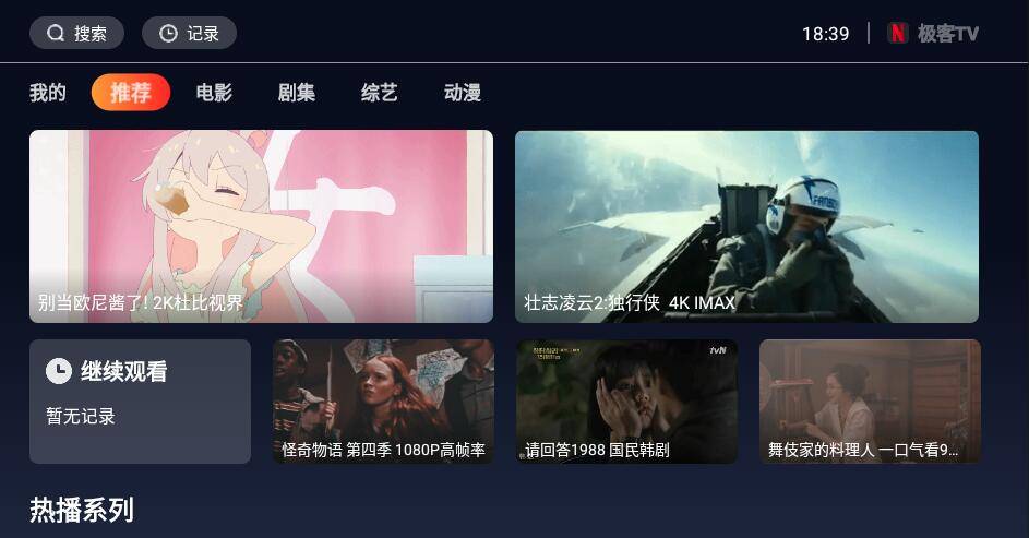 最近有一款新上线的tv特别不错,不错的地方在于视频片源非常好,对比同类的画质已经提升一个档次了,什么高帧率、杜比视界都来了,极客tv采用的和影视工厂相同的源码,大家一看就会很熟悉,所以在操作上来说,大家也应该很熟悉。