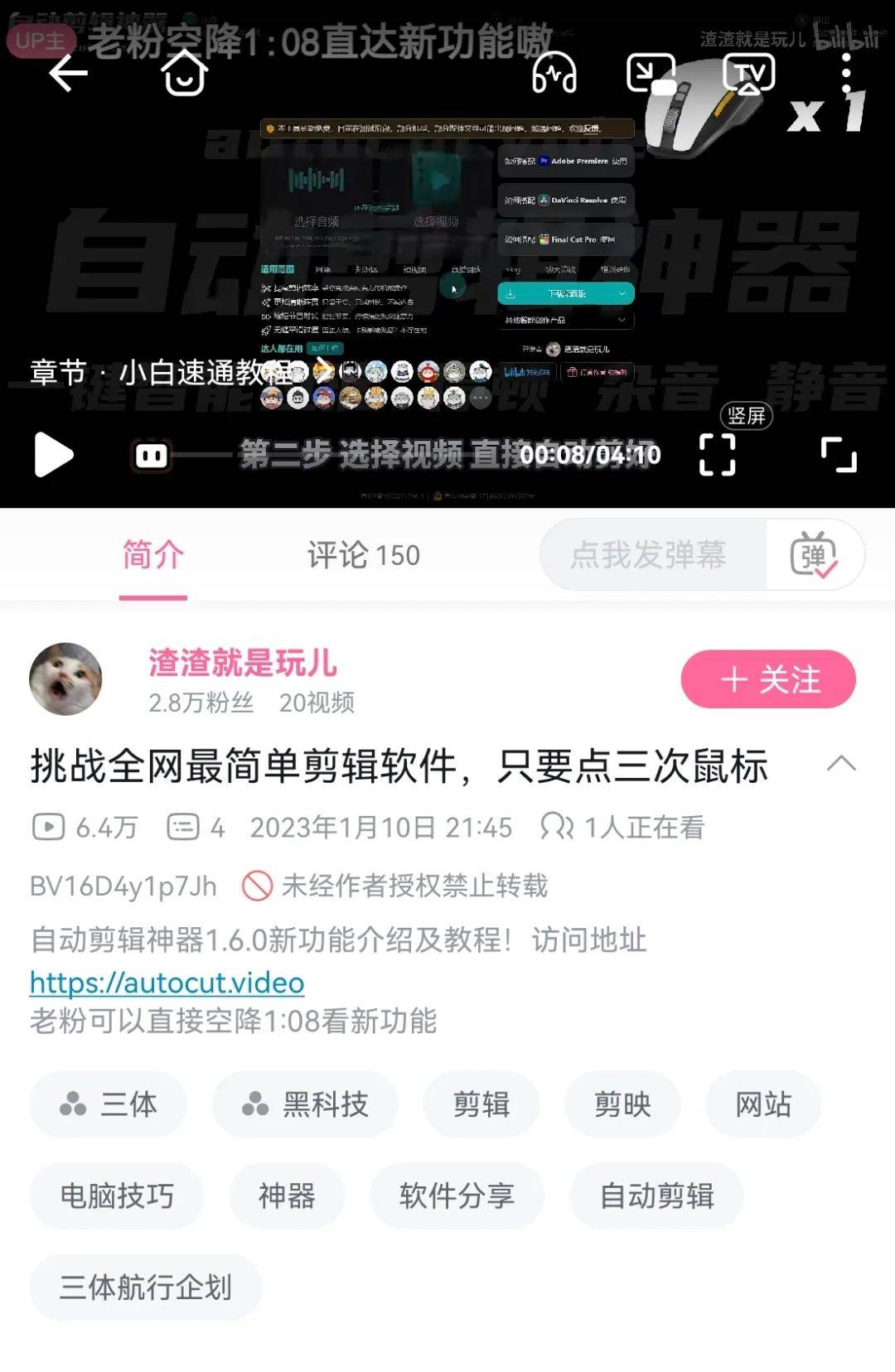 刚好近日看到一个 b 站 up 主个人开发了一款自动剪辑工具,软件名叫「自动剪辑神器」