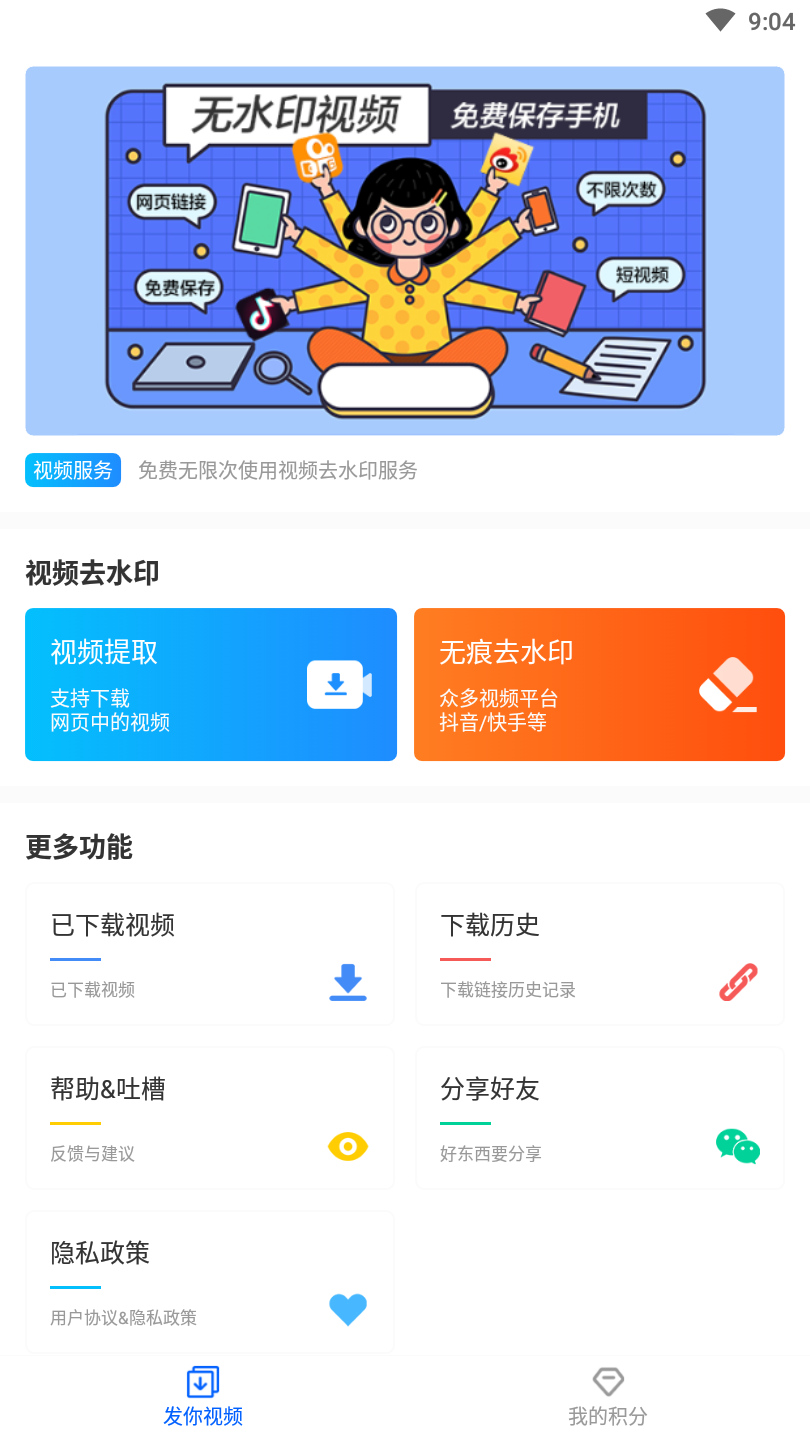 和快下载一样,就名字不一样,可能改名了。 支持各大短视频平台视频下载,无水印解析。 此版本为纯净版,无任何广告 应用截图 previous next 应用信息 名称:发你视频下载v1.6.0纯净版 大小: 20.32mb 测试系统:android 8.0 普通下载 急速下载 × 云顶集团3118的版权说明 翻应用是一个非营利性个人博客,并不贩卖软件,不存在任何商业目的及用途。不得将上述内容用于商业或者非法用途,本站信息来自网络,云顶集团3118的版权争议与本站无关。如有侵权请邮件与本站联系处理。 添加翻应用公众号,防迷路